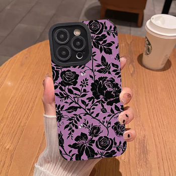 INS Purple Rose Leder Handy hülle für iPhone 16 15 17 Pro Max Retro Wildleder Funda Coque Stoß feste Rückseite