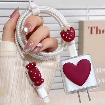 غطاء واقي لحلوى الكرز الحلوة ثلاثي الأبعاد لهاتف آيفون 20 واط مع غطاء واقي لأعض الرأس غطاء حماية للشاحن