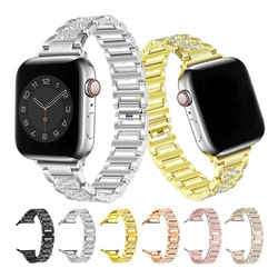 Nueva correa de reloj de acero inoxidable con ajuste de Metal de diamante completo para Apple Watch Bands 38mm 42mm 46mm 49mm 20mm 22mm Smart Watch Band