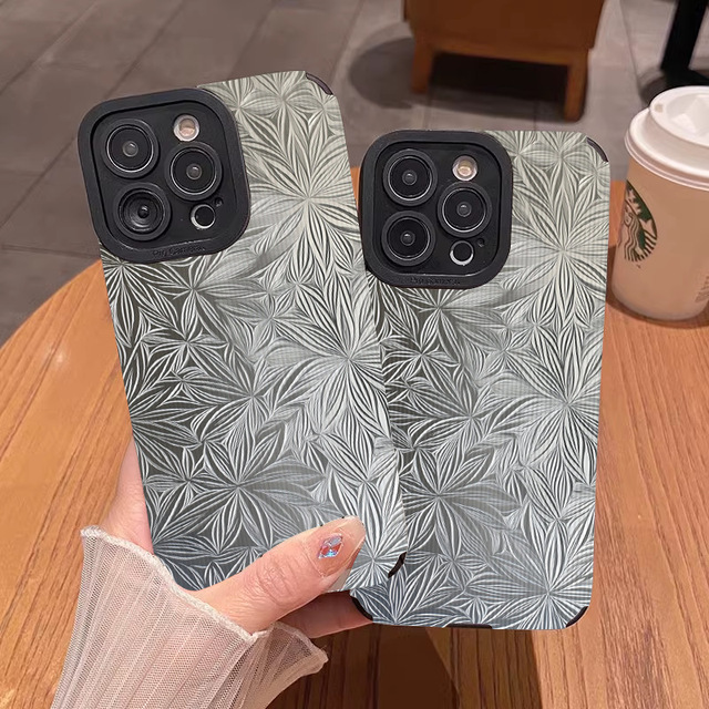 Nueva Funda de teléfono móvil de cuero con textura de Flor de hielo plateada para iPhone 16 17 Pro Max Retro Suede Funda a prueba de golpes