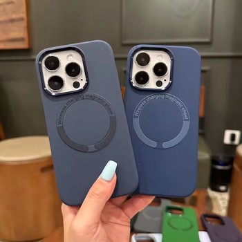 Custodia per telefono magnetica in pelle minimalista per iphone 17 16 15 14 Pro Max Business satinato Wireless custodia posteriore antiurto
