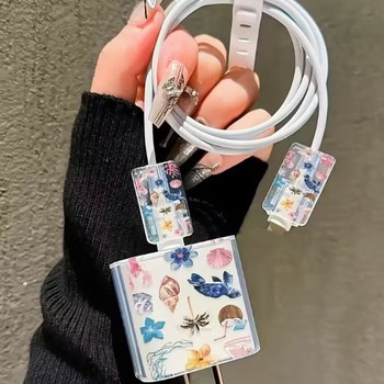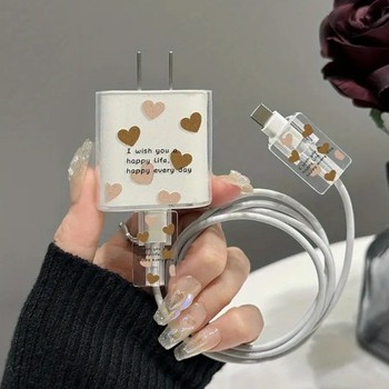 חם מכירה שקוף דפוס צבעוני שקוף רך עבור אפל iPhone 18w 20w 20w USB כבל כבל מגן הסיטונאי