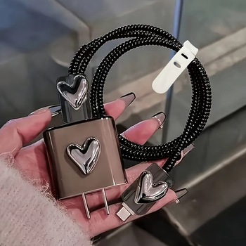 אופנה שחור 3D צורה לב דפוס צורה של מטען רך עבור iPhone 18w 20w מטען קליפ ביס