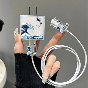 חדש למכירה כחול גלים דפוס מטען רך מטען עבור iphone 18w 20w מטען קליפ ביס