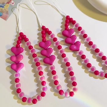 2025 Y2k חדש רוז לב אדום מוקצף עם צמיד חרוז תיק תלמידות מתאים לאפון מקרים טלפון אוניברסלי lanyard