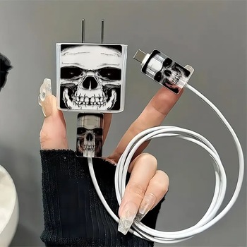 חדש דפוס גולגולת שחור יצירתי מארז מטען רך עבור iphone 18w 20w מטען USB כבל כבל מגן הסיטונאי