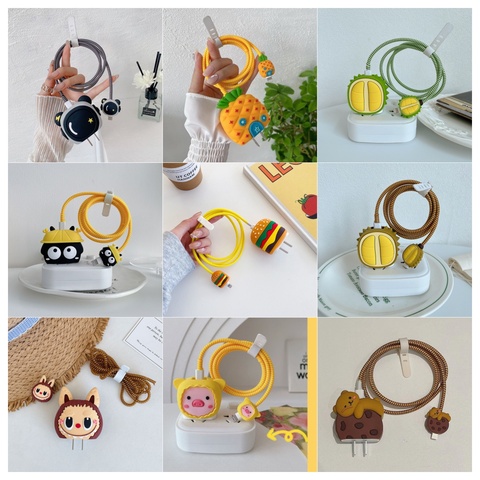2025 חדש אנטי-שבירת קריקטורה נתונים כבל 20w עבור אפל מטען סיליקון טלפון נייד אפל מתפתל במקרה כבל USB