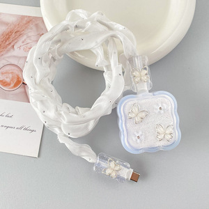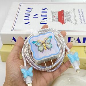 חדש גל אופנה קריסטל 3D פרפר מגן כיסוי עבור iphone 40w מטען usb מגן לנשוך חבל כיסוי רך חמוד